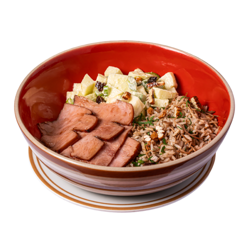 Arroz Árabe, Jamón Glaseado con salsa, Ensalada Waldorf y Perejil.