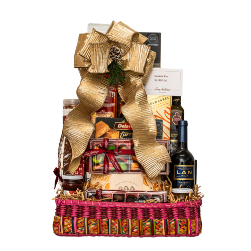 Keke Navideño San Antonio, Mermelada de Albaricoque San Antonio (220g), Mermelada de Fresa San Antonio (220g), Mazapán Surtido (220g), Chocolate Surtido (220g), Chocolate Almendra Garrapiñada Pote, Orejita de Chancho Balde (225g), Mini Panetón de Chocolate San Antonio, Galletas de Miel Alicia San Antonio Bolsa (215g), Galletas de Miel Pfeffernüse San Antonio Bolsa (170g), Café San Antonio Molido Fino (250g), Café San Antonio en Grano (250g), Galletas Surtidas Lata Pequeña, Turrón Duro Delaviuda (150g), Panettone Milanese Tre Marie (1kg), Espumante Freizenet Cava (750ml), Whisky Johnnie Walker Gold Reserve (750ml), Vino LAN Reserva (750ml), Torta Imperial Delaviuda (200g), Turrón Blando Delaviuda (200g), Cantuccini Toscani Belli Almendras 20% Caja (100g), Tower Tin (175g), Aceite de Oliva G. Cremonni Extra Virgen, Mostaza antigua Bio Clovis Frasco (200g), Anchoas en Aceite de Oliva Valle Fertil (100g) y Aceitunas Verdes con Anchoas La Española (130g).