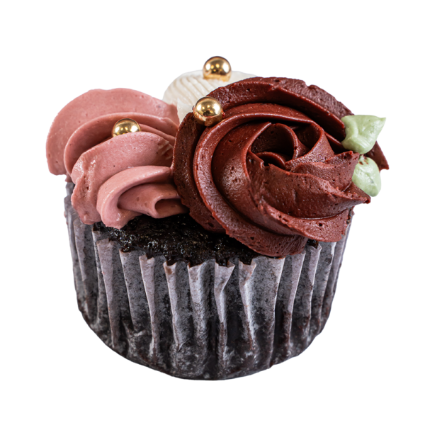 Keke de chocolate con relleno de ganche de chocolate blanco o crema de avellanas con chocolate, decorado con buttercream de vainilla y chocolate y grageas.Imágenes referenciales