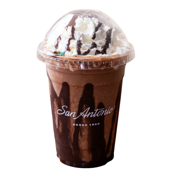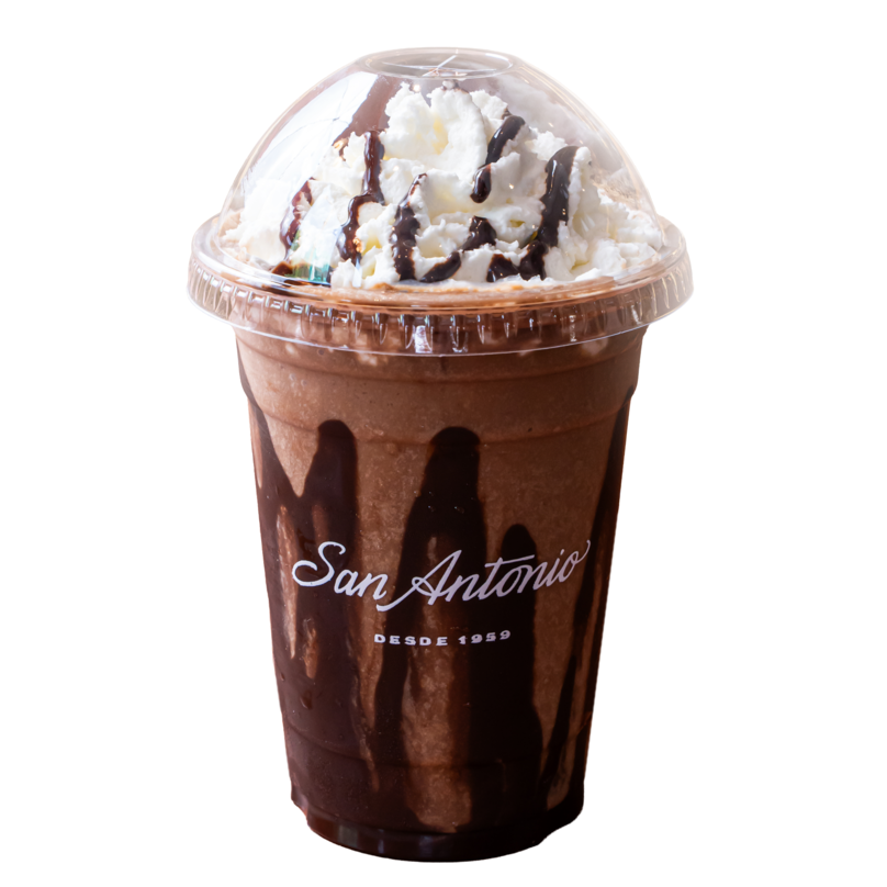 Hielo, café, fudge, crema de leche, leche fresca y crema chantilly.