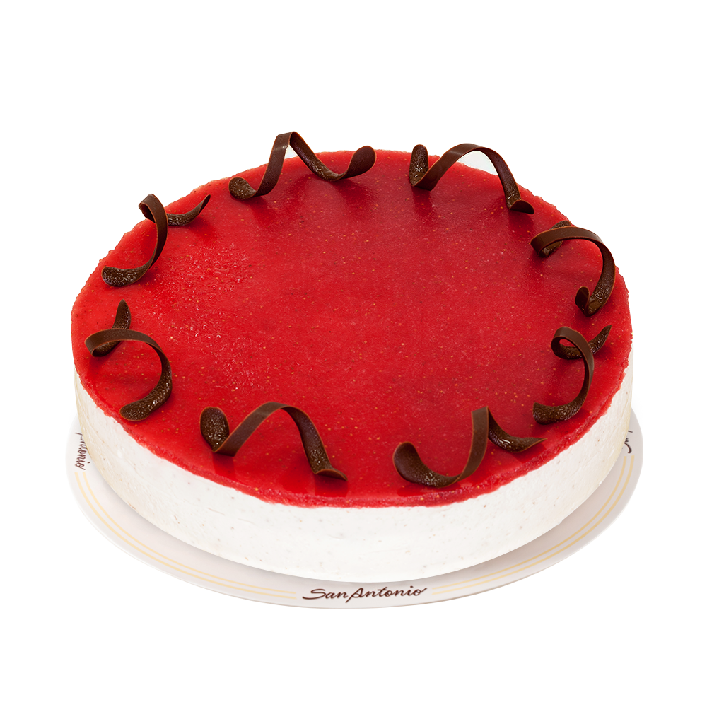 Bizcochuelo de vainilla, queso crema, crema de leche y fresas.