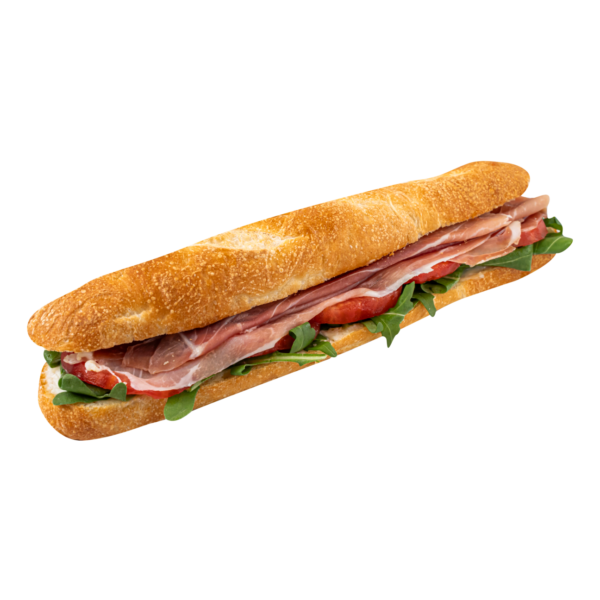 Jamón serrano, queso crema, pasta de ajos asados, arúgula, tomate y aceite de oliva.