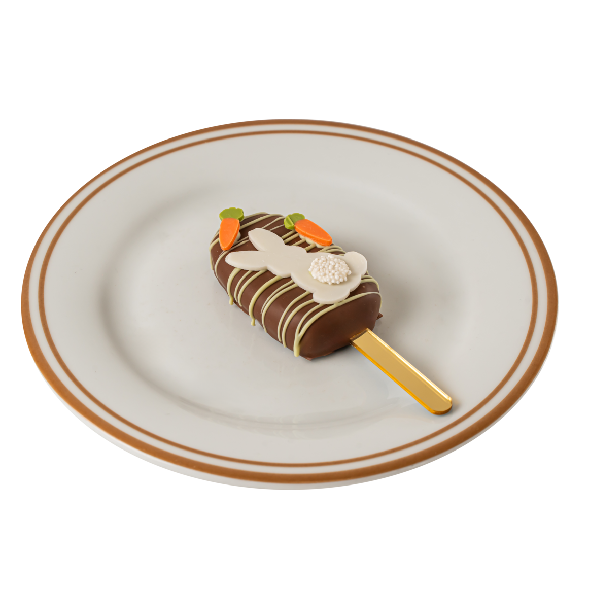 Paleta de masa de pionono con galletas Oreo y leche condensada, bañada con cobertura de chocolate de colores y decorada con grageas.