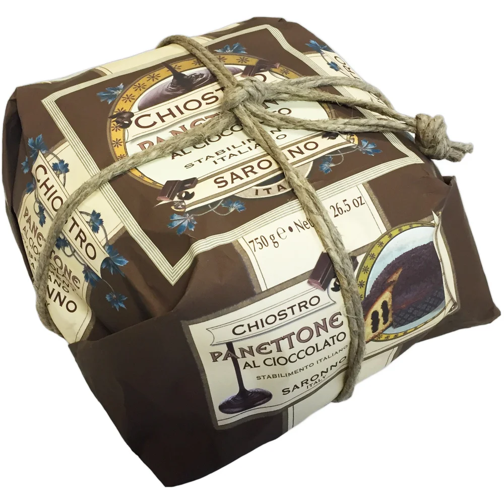 Panettone envuelto a mano, cubierto y relleno de crema de chocolate, sin frutas confitadas ni pasas (750g).