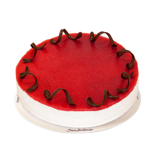 Bizcochuelo de vainilla, queso crema, crema de leche y fresas.