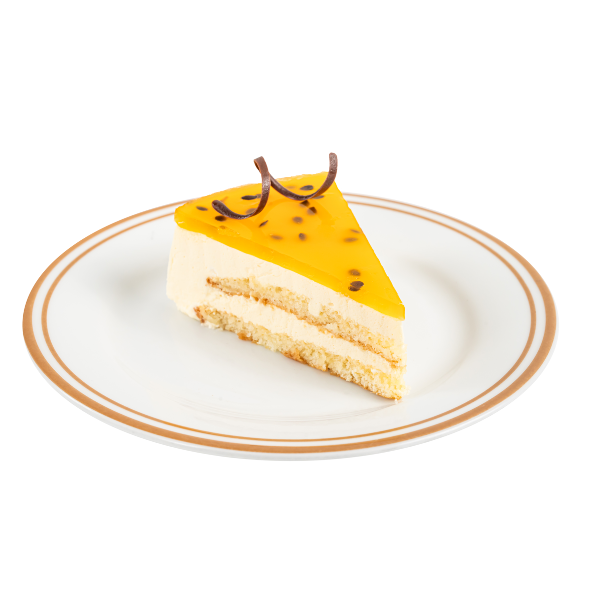 Bizcochuelo de vainilla, queso crema, crema de leche y maracuyá