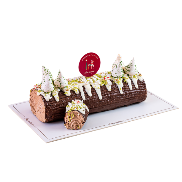 Pionono fruta confitada, pisco, crocante de castañas, cobertura de chocolate y merengue. 8 a 10 porciones